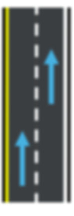 A solid or dashed yellow line indicates the left edge of the traffic lanes going in your directions.
